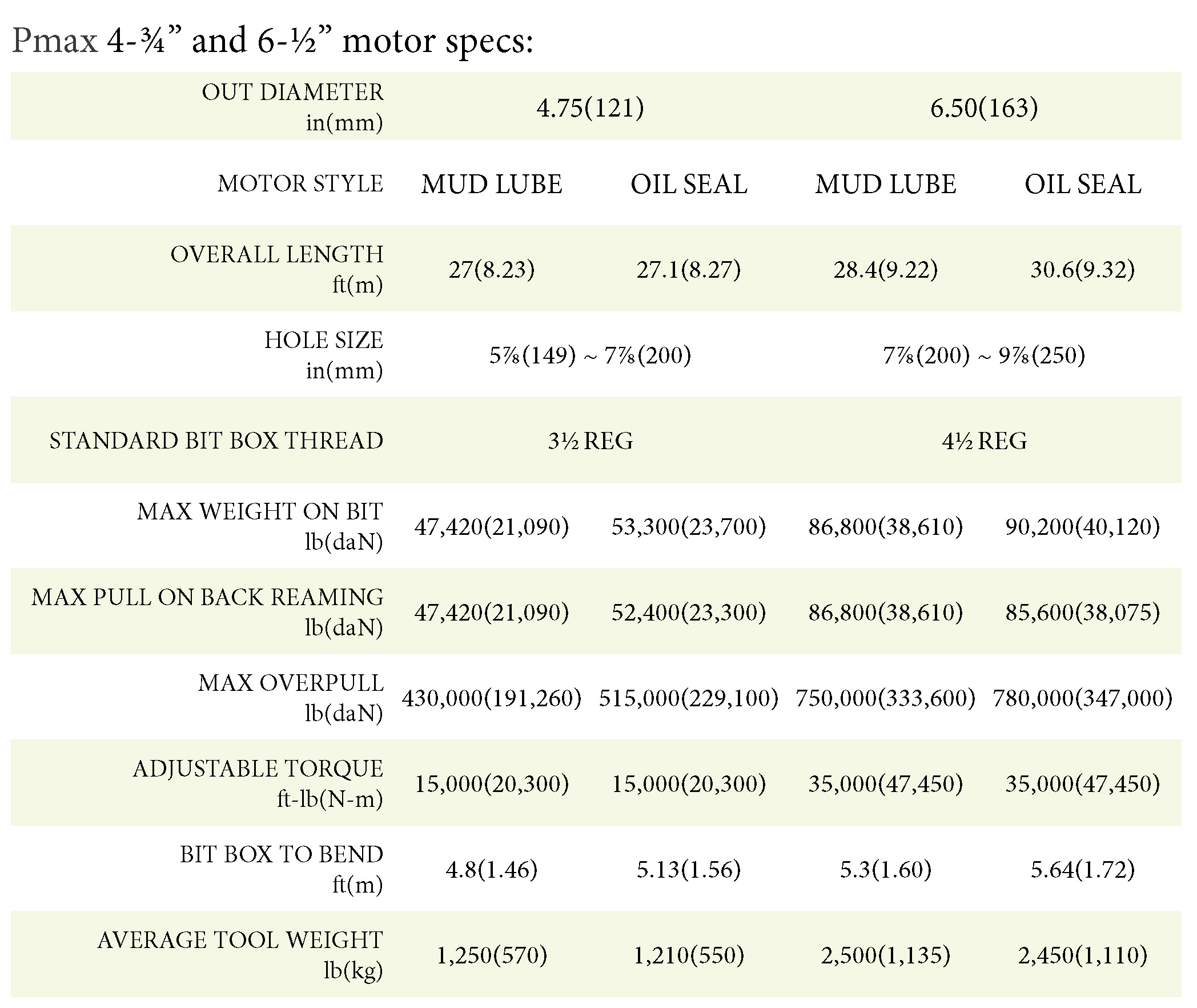 PMAX ENERGY SERVICES INC is pleased to offer full size range of customized designed and manufactured Thru-tubing motors from 1-11/16” to 9-5/8”. WDM motors are fabricated according to North American Oil and Gas industry standards, also with our unique designed specifications. We could offer a reliable and long lasting operation with our state of art drilling motors.